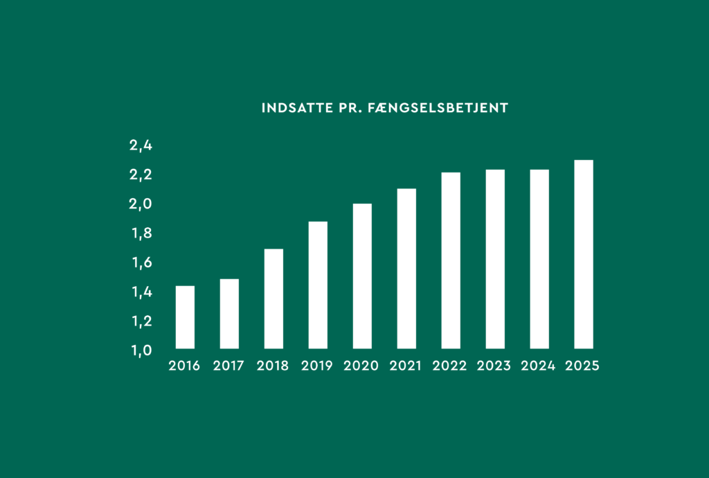 Hver fængselsbetjent skal holde styr på stadig flere indsatte Selvom personalekurven går opad, går det nedad med personaledækningen. 2025 var et historisk år. Det var det første år, hvor der både blev ansat flere fængselsbetjente, transportbetjente og værkmestre, end... Læs mereFængslerne har aldrig været så propfyldte som nu Belægsprocenten lå på 103 procent i 2025. Det er ny rekord. Det er efterhånden blevet en dårlig vane, at Danmarks Fængsler bruger alle sine celler. Siden 2018 har belægningsprocenten ligget... Læs mereRygter om nyt kvindefængsel vækker bekymring i Sydjylland Planerne for et helt nyt kvindefængsel i Ribe er blevet mere konkrete. Fællestillidsrepræsentant Niels Jensen kalder det en svær opgave at få fængslet bemandet og efterlyser andre løsninger. Som et... Læs merePraktikvejlederne på Møgelkær Fængsel siger stop Fængslet har kun én af de originale praktikvejledere tilbage, efter de resterende fem har valgt at fratræde. “Ud fra de rammer vi har, kan vi ikke længere stå inde for... Læs mereNy overenskomst lader vente på sig Folketingsvalget kom på tværs, så den nye overenskomst er endnu ikke trådt i kraft. Det var egentlig meningen, at den nye overenskomst skulle have manifesteret sig i kroner og ører... Læs mereKurven er knækket! For første gang siden 2012 er antallet af fængselsbetjente steget. Der er også fremgang blandt værkmestre og transportbetjente. Efter 13 år i træk med personalenedgang sker der nu endelig noget... Læs mereOplevelser fra en hverdag i front Fængselsforbundet har udgivet en bog sammen med Politiforbundet, FOA og Reddernes Udviklingssekretariat med 58 beretninger fra ansatte i frontlinjen. “Vi blev kaldt ud til et trafikuheld – en ung kvinde... Læs mereEfter seks måneder er fængselsbetjent Bejtush Neziri tilbage i Kosovo 15 kosovariske fængselsbetjente har færdiggjort deres efteruddannelse i Danmark. Nu er de tilbage på Gjilan Fængsel – men hvad er planen? Bejtush Neziri har i omkring 20 år arbejdet som... Læs mereFra fængselsbetjent til fællesskab: Michaels vej tilbage gennem idrætten Efter et sammenbrud i 2017 fandt Michael vej tilbage gennem Safe Zone, hvor fællesskab og forståelse blev nøglen til at genvinde fodfæstet. “Jeg er stadig fængselsbetjent, jeg er bare ikke... Læs mere“At arbejde i et arresthus var som at deltage i en slags fætter-kusinefest” Tidligere tillidsmand i Arresthuset i Silkeborg, Robert Demény, gør status efter knap 40 års tjeneste. Fra Robert Demény begyndte som aspirant på Statsfængslet i Vridsløselille til han gik på pension... Læs mereRemi løb 52 kilometer i Randers Arrest Fængselsbetjent Betinas træningsprojekt har udviklet sig til et fælles løft for både indsatte, kollegaer og arbejdsmiljø i Randers Arrest. De er tre personer i kondirummet. Luften er til at skære... Læs mereAmbassadør for en god sag Fængselsbetjent Christian Fonnesbech er med til at øge kendskabet til Thin Silver Line. Det kan kan være nødvendigt at trække lidt ekstra frisk luft ned i lungerne, hvis man over... Læs mereMøgelkær Fængsels elever mangler en plan Fem ud af seks praktikvejledere på uddannelsesinstitutionen har fratrådt stillingen – hvad skal der ske med eleverne? Fem ud af seks praktikvejledere på Møgelkær Fængsel har fra april valgt at... Læs mereInstitutionsmedarbejdere: ”Vi er glade for at arbejde her” Medier og politikere skaber et forkert billede af Kærshovedgård, lyder kritikken fra medarbejderne på udrejsecentret. Kærshovedgård er måske den mest udskældte institution i Danmarks Fængsler. Udrejsecentret får skudt i skoene,... Læs mereBesparelser rammer fiskerikontrollørerne Sammenlægning af to styrelser betyder ansættelsesstop, udskydelse af opstart på uddannelsen, forflytninger og fyring af fiskerikontrollør. Vi skal vænne os til et nyt navn: Styrelsen for Fødevarer, Landbrug og Fiskeri.... Læs mereLandets største fængsel På rekordtid er Sønder Omme blevet fordoblet. Byggerier af nye fængsler har det med at gå over tid og budget. Derfor er det en positiv overraskelse, at udvidelsen af Sønder... Læs mere